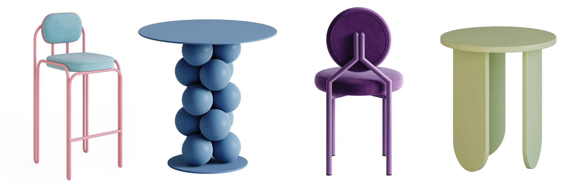 Основу коллекции составляют оригинальные формы и плавные изгибы металла в сочетании с тактильным велюром. Особая гордость бренда — тщательно подобранные оттенки, создающие гармонию между металлическими элементами и текстильной обивкой. Эти цвета могут сливаться в единое целое или контрастировать, в зависимости от задумки, делая каждый предмет универсальным и выразительным решением для интерьера.