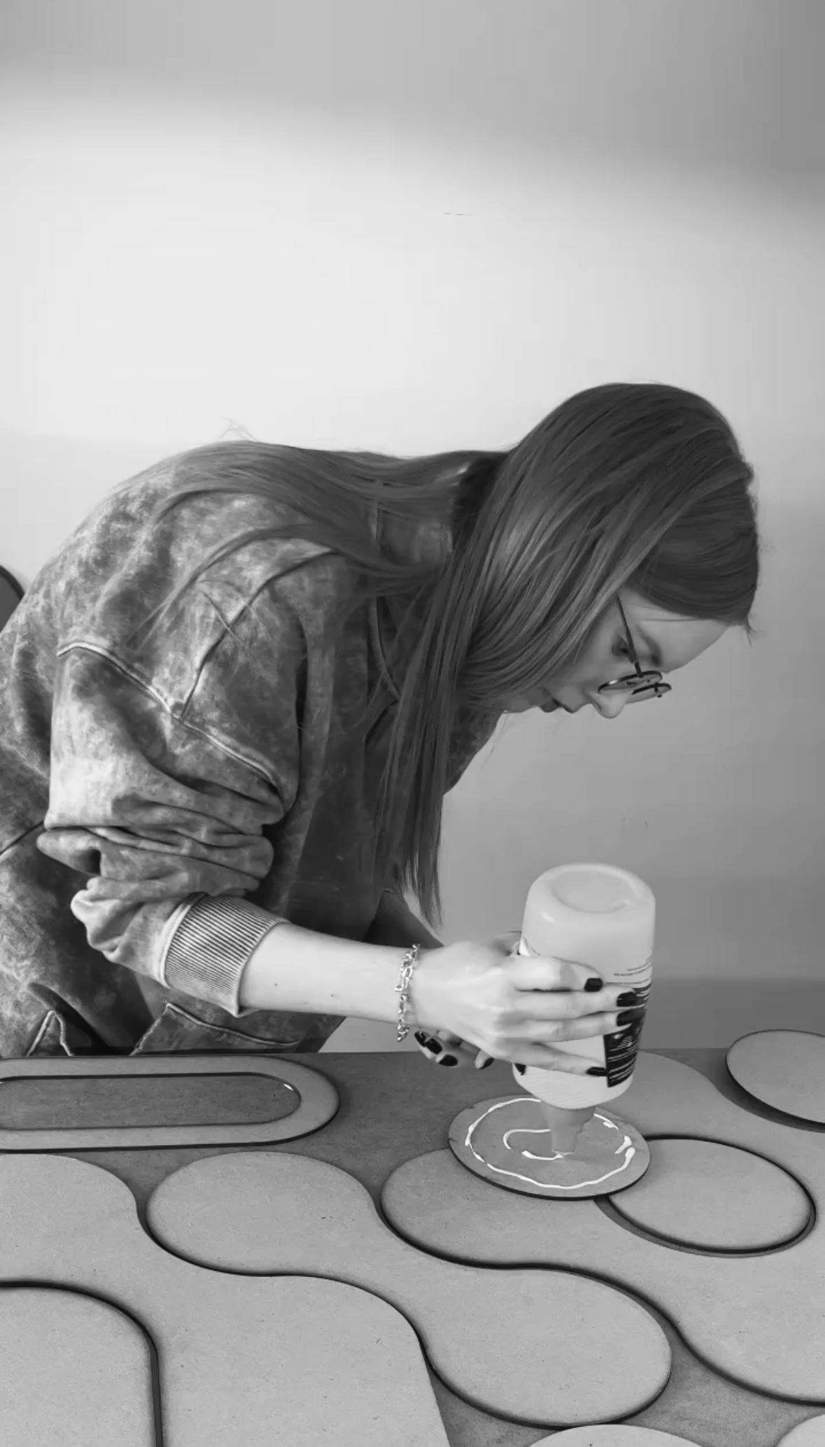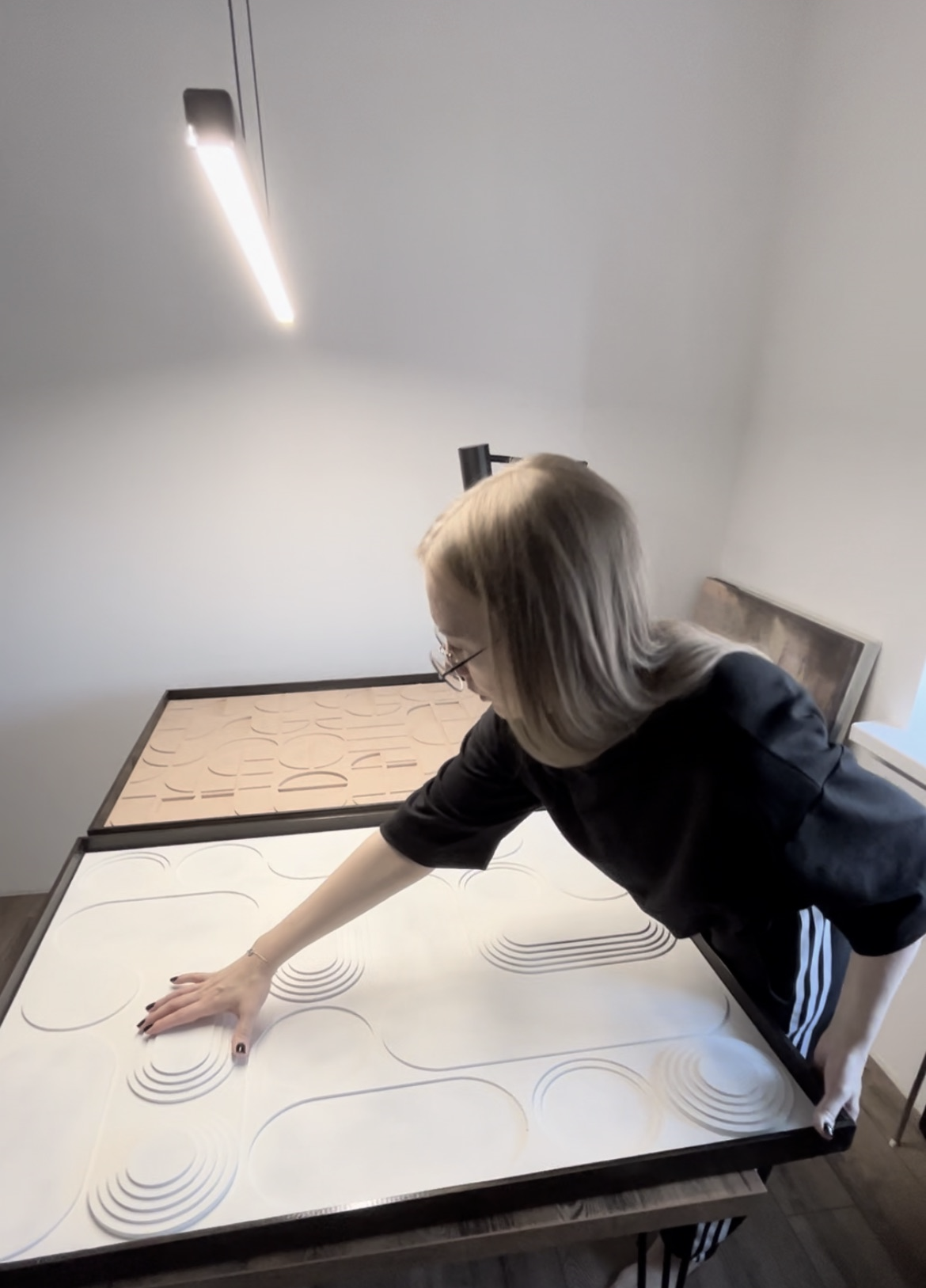 Анна постоянно экспериментирует с материалами, создавая новые текстурные элементы, вдохновленные природными фактурами. Её работы отличаются сочетанием нейтральных базовых тонов с яркими акцентами, рельефными поверхностями и «живой» текстурой.