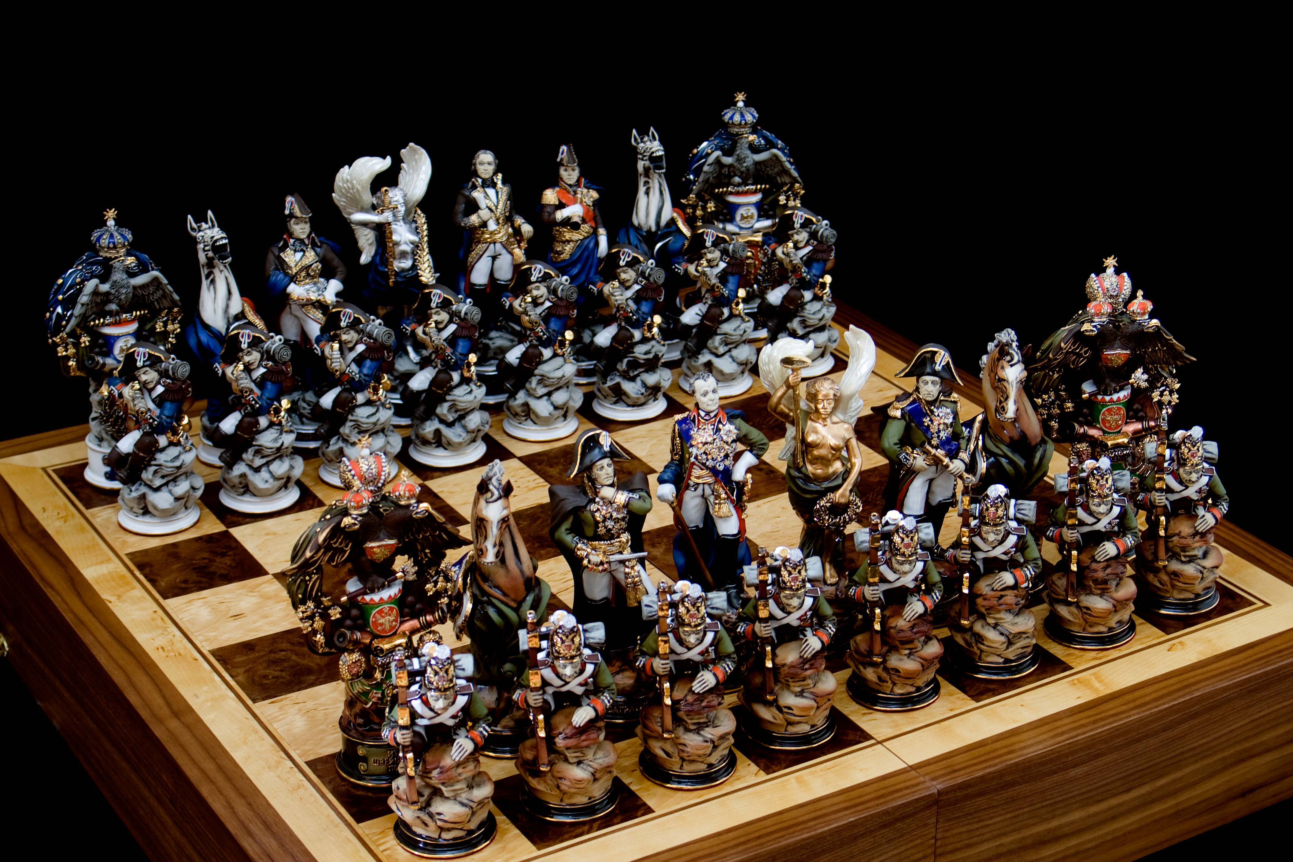 Любовь к шахматам и страсть к русской истории – такой тандем проходит через все творчество Григория. Почти половина эксклюзивной коллекции посвящена славным событиям государства российского. Так, серия «Сподвижники и противники Петра I» или «Итальянский поход Суворова 1799 года». Исторически верные костюмы и портретное сходство главных фигур делают шахматное творчество еще и весьма познавательным.