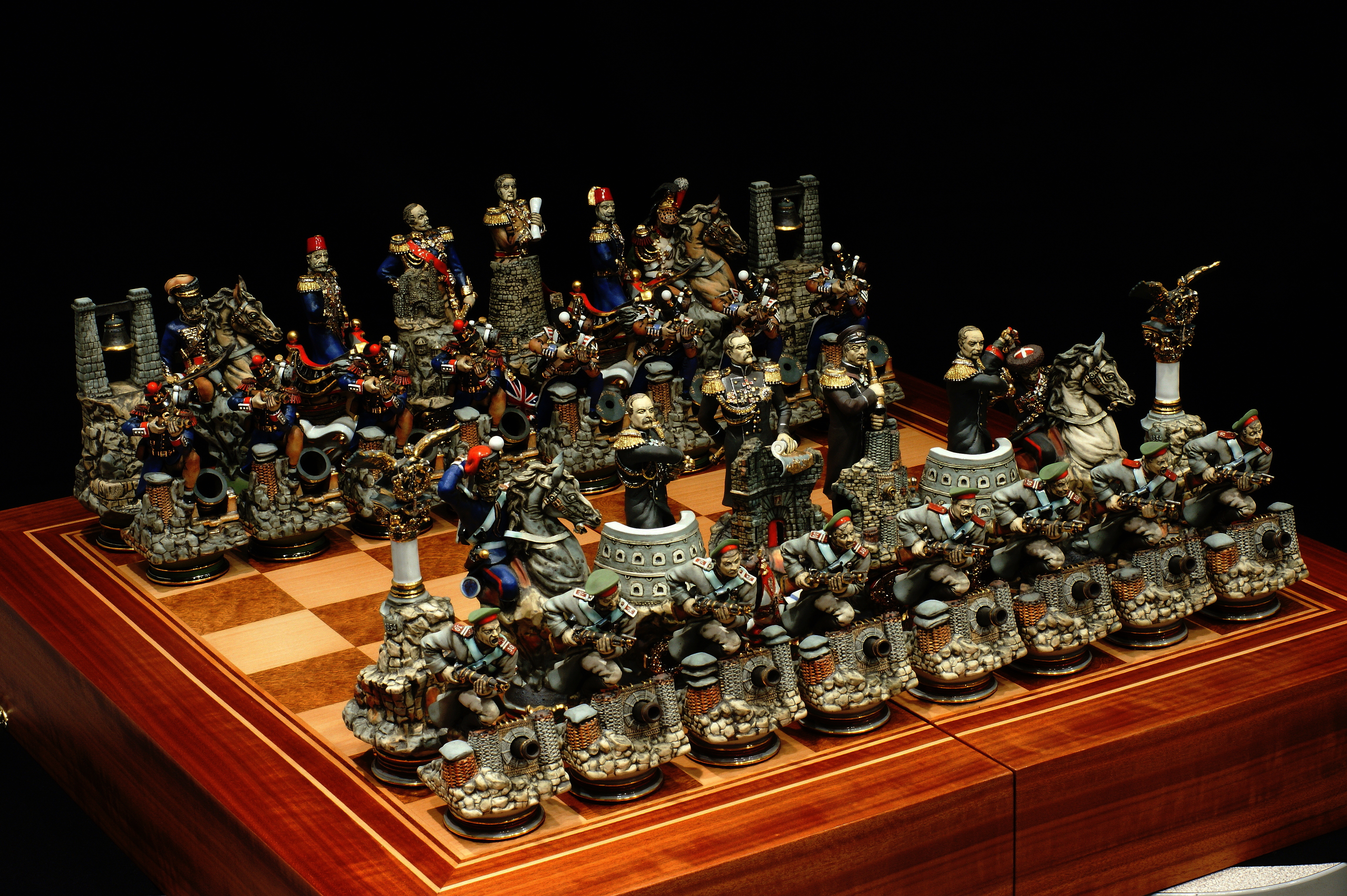 Настоящий рыцарский турнир XII века развернулся на шахматном поле. Вот уже 20 лет керамика в руках Григория Пашкова оживает и принимает шахматное обличье. Каждая фигурка в игровой галерее мастера создана с исторической точностью и ювелирна в своем исполнении. Правда, назвать игровыми эти шедевры шахматного ремесла трудно — такими миниатюрными скульптурами хочется любоваться