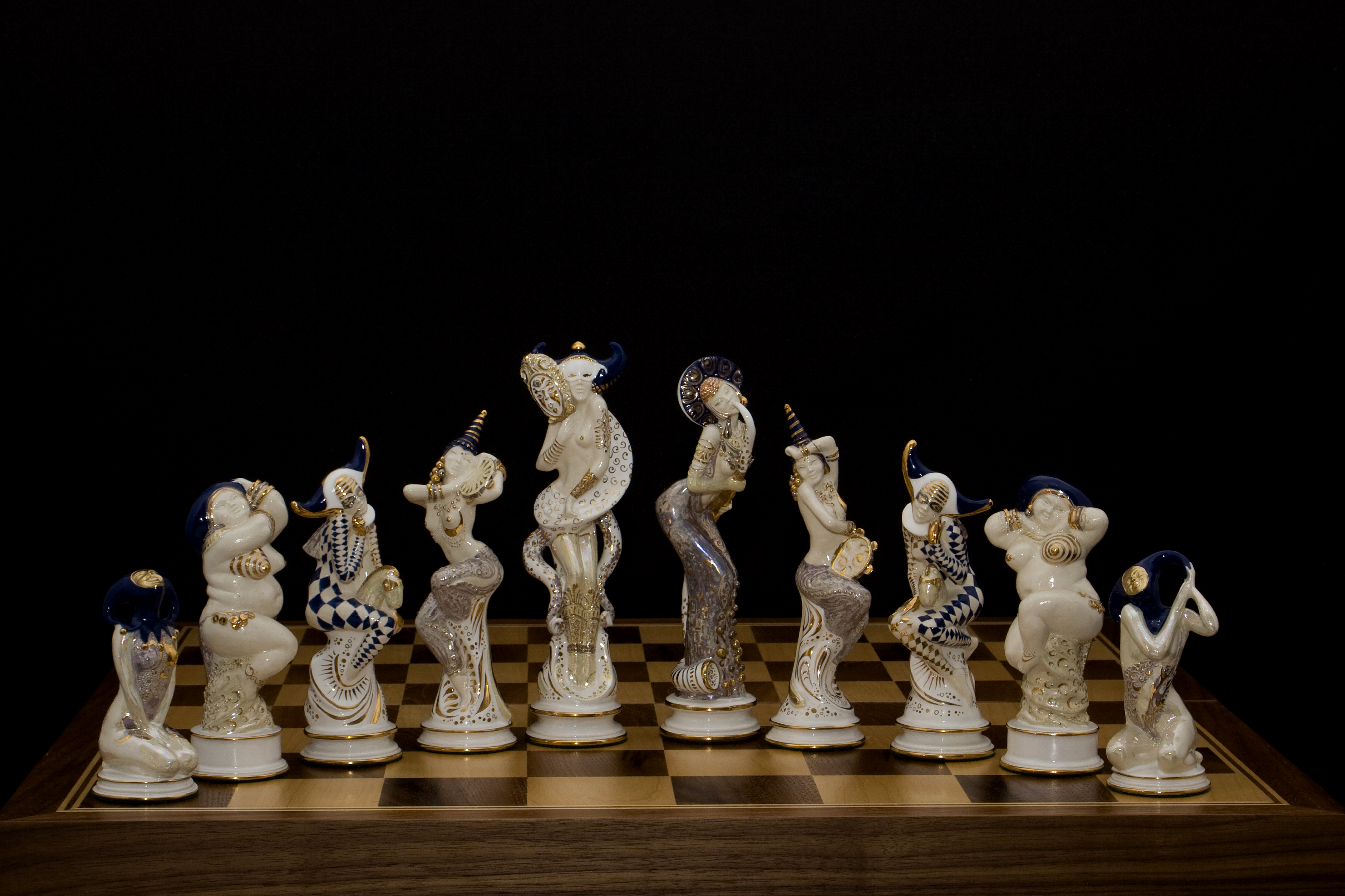 Григорий не только оживляет керамику солями и красками, но и придает ей волшебное сияние: покрывает глазурью, украшает стразами, использует техники золочения и серебрения. На создание одной коллекционной серии уходит время далеко не одной игровой партии – от 3 до 4 лет.