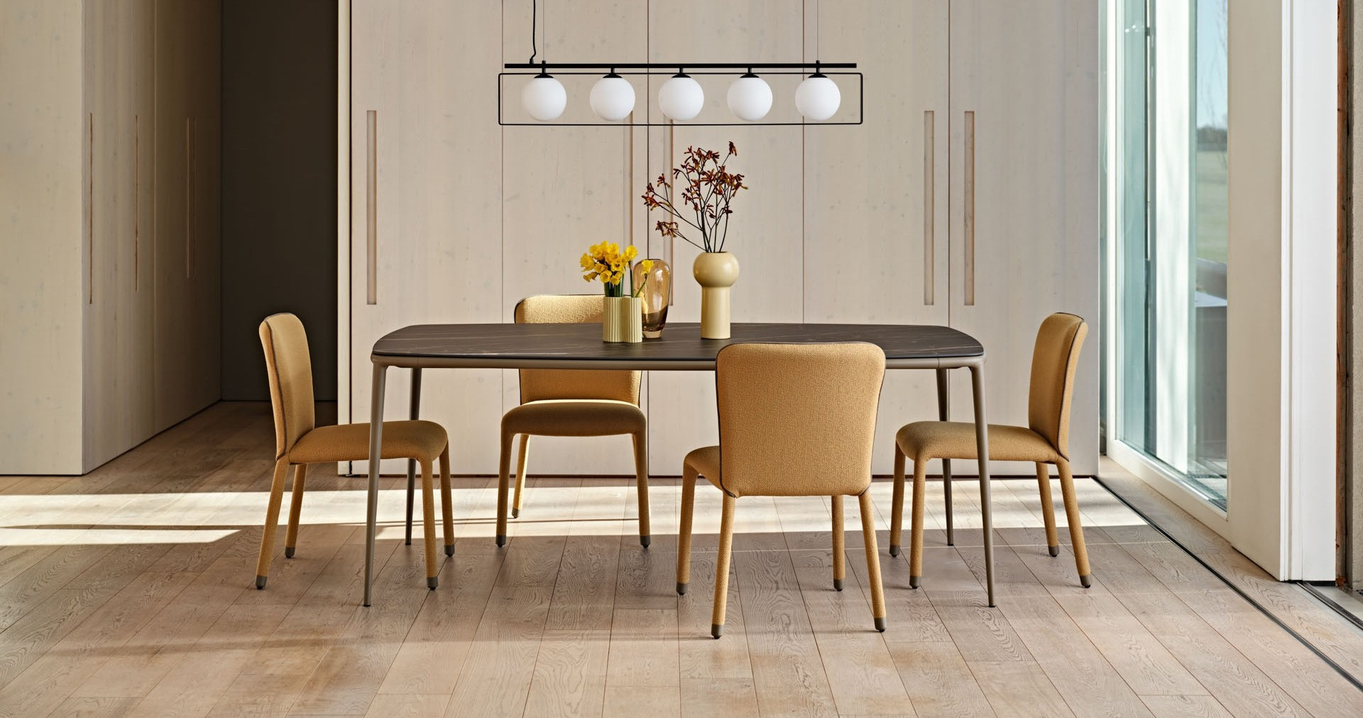 Стулья, кресла, столы и аксессуары Midj делают интерьер законченным и живым, а пространство — утончённым, но уютным.