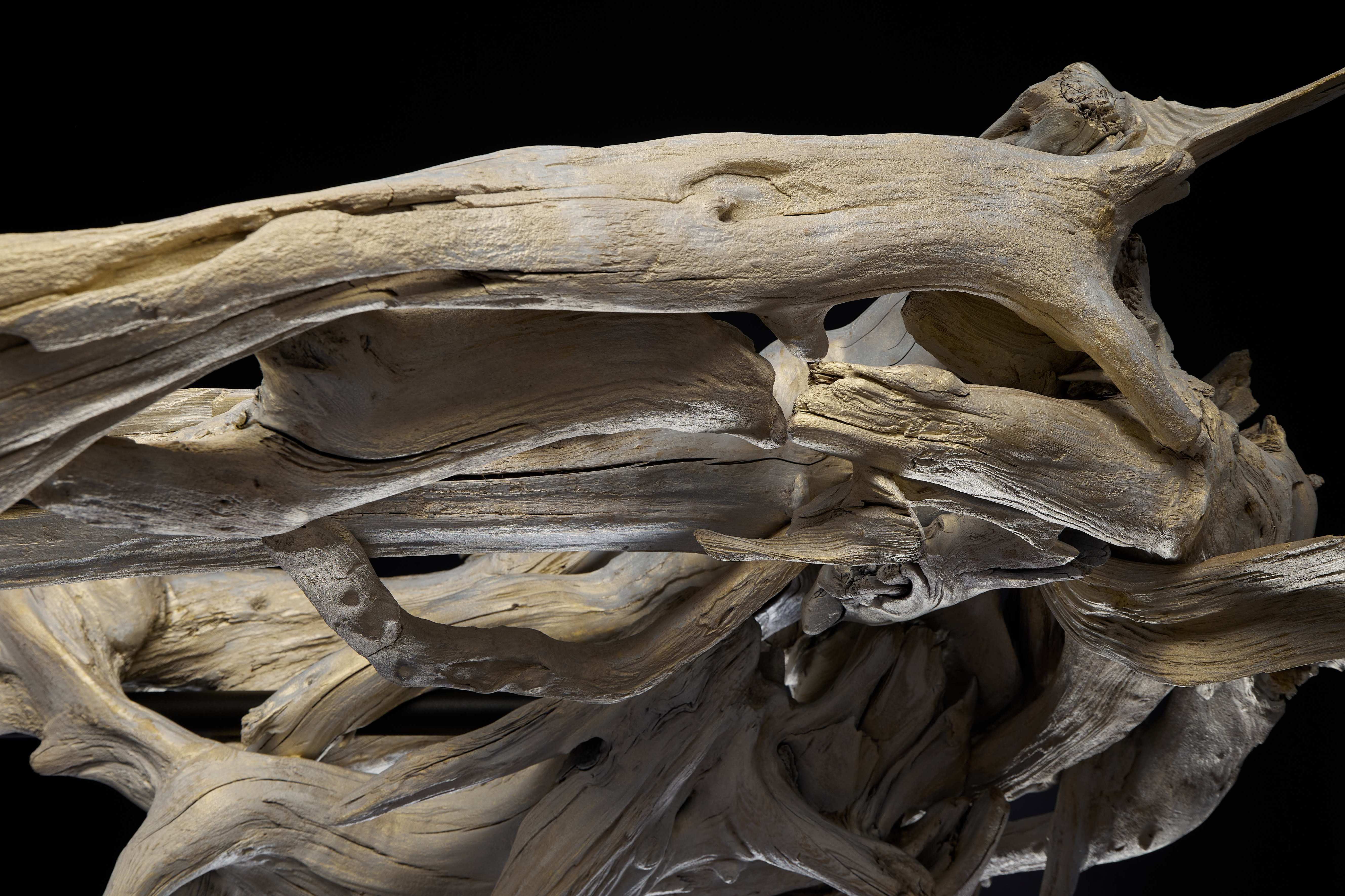 Каждый корень хранит в себе историю. Прежде чем стать частью скульптуры, он лежал и сох годами на берегу реки, долго дрейфовал в воде, не один сезон вымывался прибрежной волной, десятилетиями рос в прибрежной полосе.